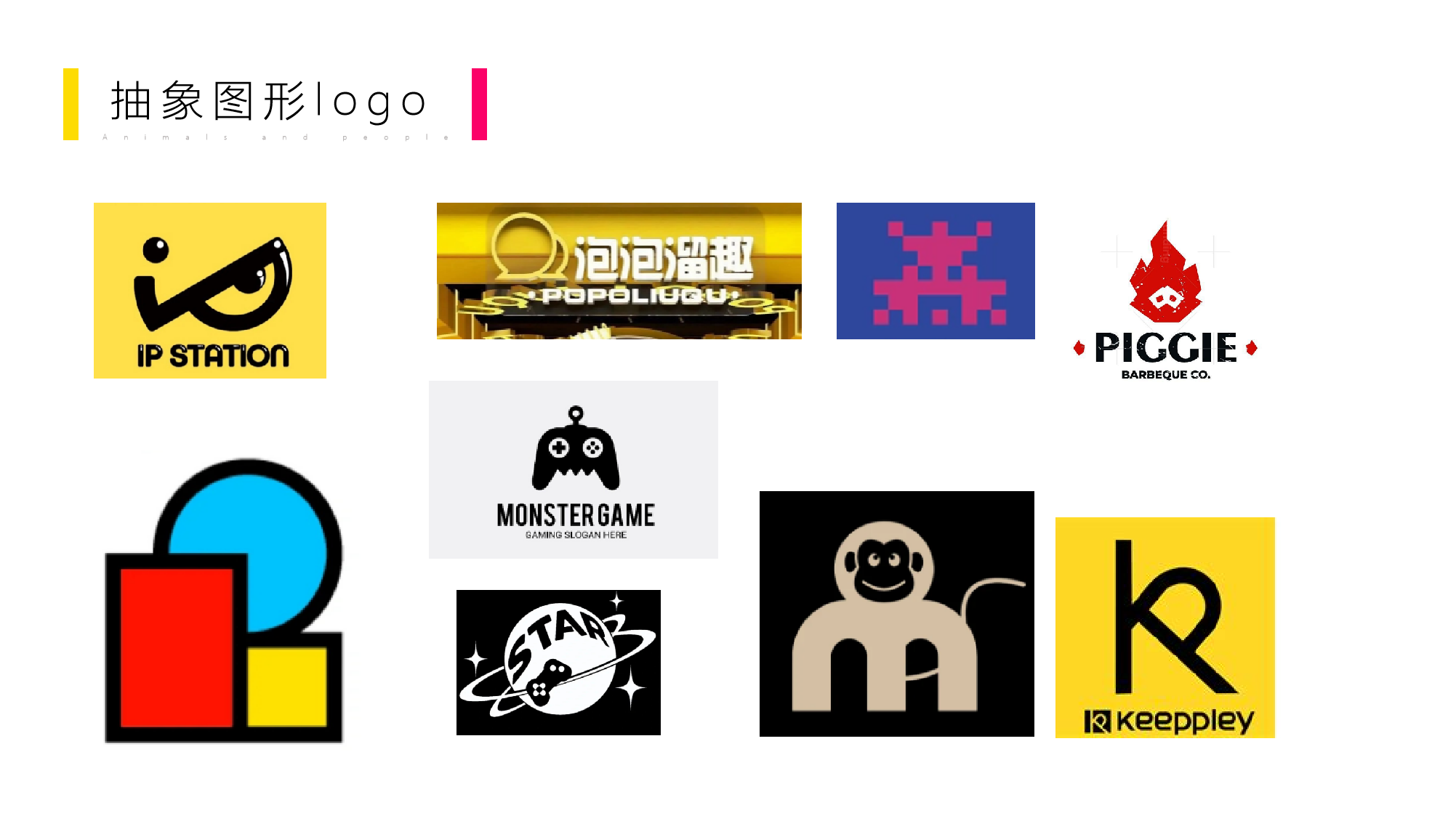 调研其他头部品牌符号特征,建立"具象图形强认知、抽象符号高溢价"的行业坐标系。发现娱乐产业符号具有三大趋势: